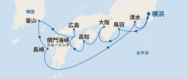 | コース名 | にっぽん横断クルーズと韓国B 11日間 M724 |