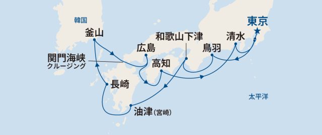 ★天候、港湾などの事情により寄港地、日時、ルート等は変更になる場合があります。