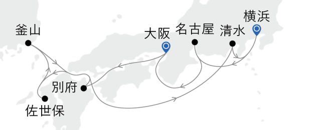 ★天候、港湾などの事情により寄港地、日時、ルート等は変更になる場合があります。