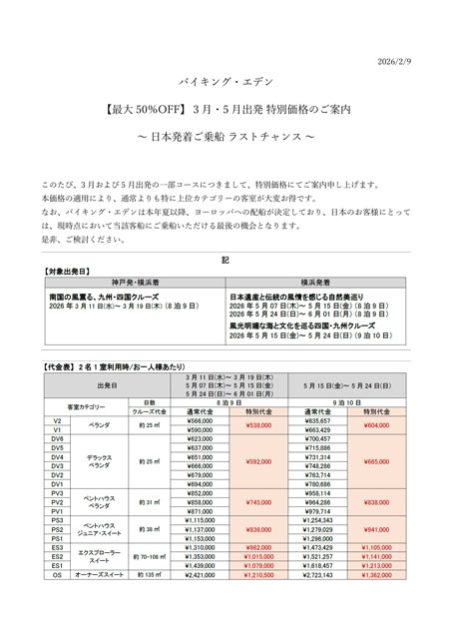 NEW2026年バイキング・エデン 最大50%OFF