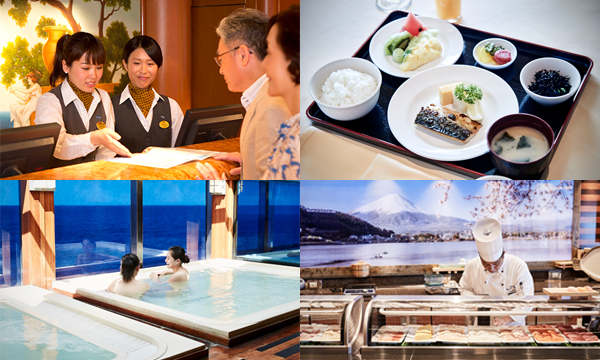 約100名の日本語を話すスタッフが乗船。言葉の心配がないように日本語新聞やレストランでは日本語メニューも用意されています。また、外国船初の洋上最大級の展望大浴場「泉の湯」も設置されています。レストランでは日本食のご用意や、客室にはポットとお茶のサービスがあるなど、日本仕様のサービスでおもてなしをいたします。